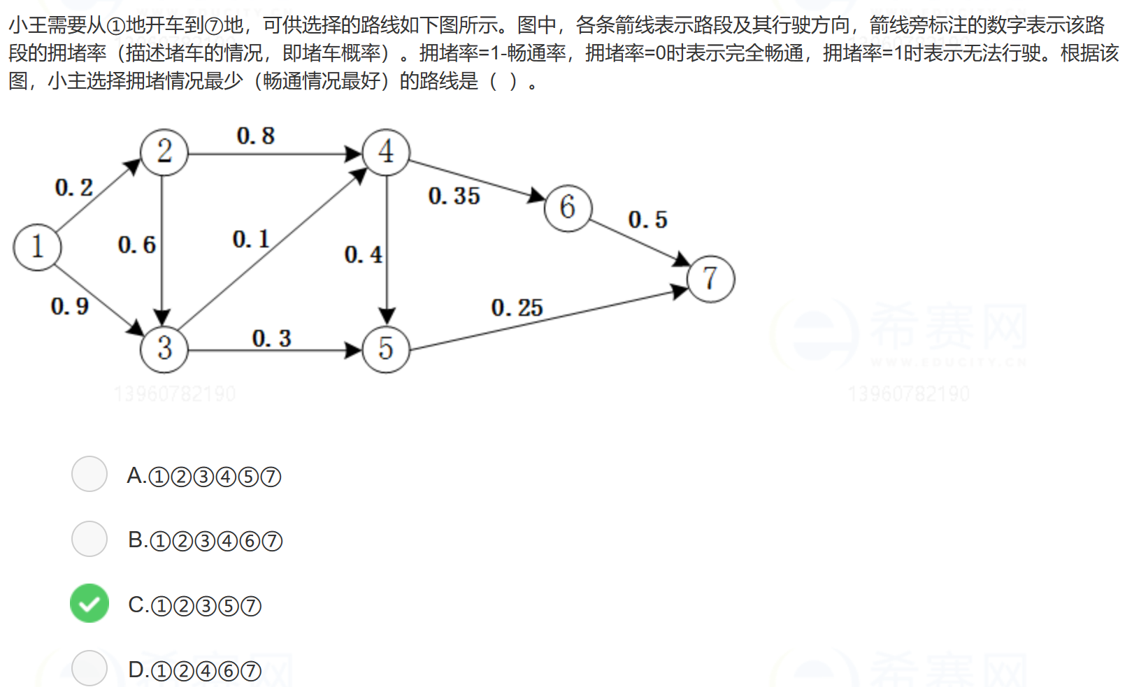 方案①②③⑤⑦的畅通概率为:
